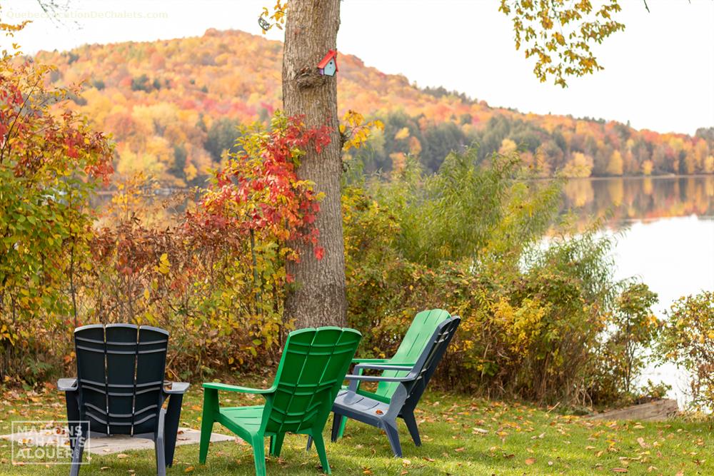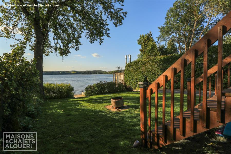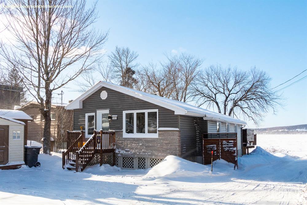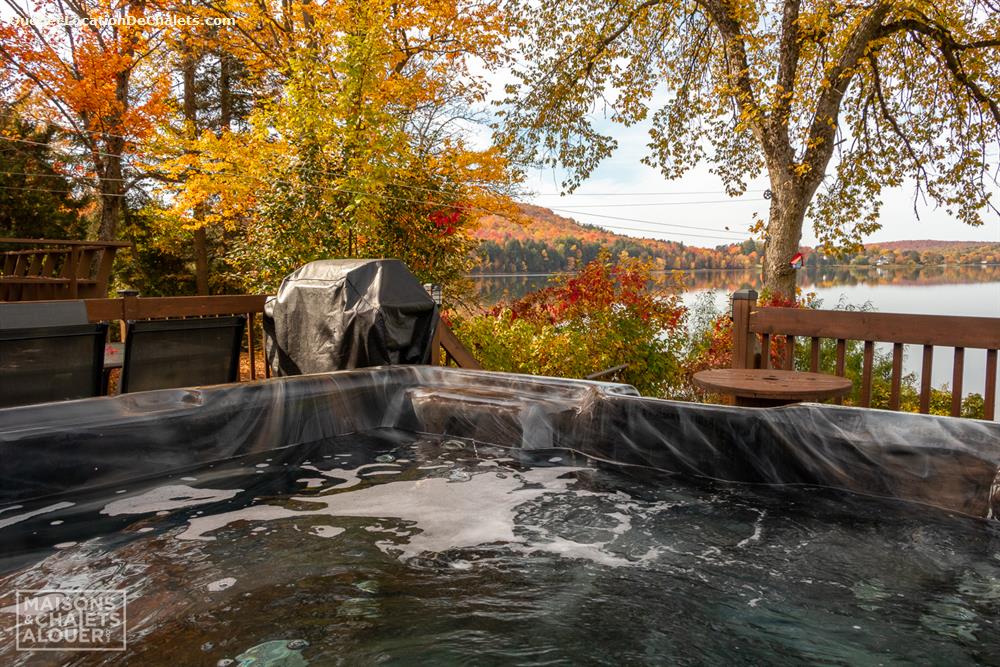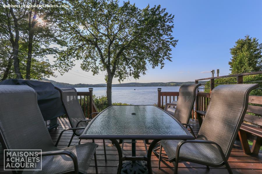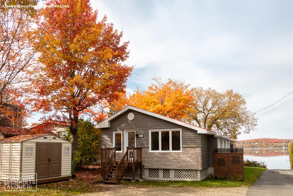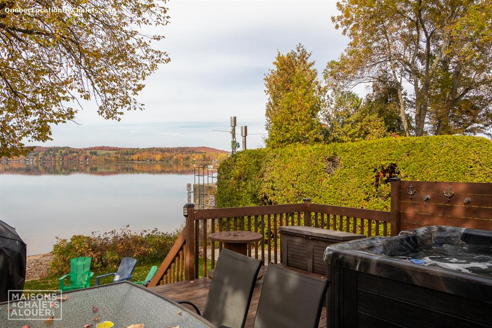 This charming rental cottage sits directly on the shores of Trois-Lacs in Asbestos. Guests are sure to enjoy their stay in this little corner of paradise, where beautiful sunsets, fresh air and relaxing in the spa are just the beginning. The fenced backyard is bordered by shrubs, trees and a cedar hedge for maximum privacy. Guests can gather round a landscaped fire pit to roast some marshmallows. Complete with patio furniture and barbecue, the deck is all set for outdoor dining to a splendid view of the lake. The whole family will enjoy Au Petit Toit Rouge: swim from the small sand beach, fish from the dock, or head out onto the lake on one of two kayaks or a rowboat provided. Cycling enthusiasts will also appreciate nearby access to a bike path. Children will have fun building sandcastles and playing on the lawn or at a small park just minutes away near the municipal beach. *** During periods of heavy rainfall, water level may rise in the lake and temporarily cover the sand beach. *** Between Thanksgiving and the Patriots' weekend, we can not guarantee that the watercrafts will be available. *** This one-storey property with bright, spacious common areas can accommodate up to 4 guests comfortably. There are 2 closed bedrooms, a full bathroom with washer and dryer, a lovely open-concept space (living room with wood stove, dining room and fully equipped kitchen), as well as a glassed section opening onto the deck. Entertainment options abound: flat-screen television (cable and satellite), DVD player, small stereo system, Wii game console, soccer table and several board games. Main floor: Bedroom #1 : 1 Queen bed / Bedroom #2 : Double bed / Living room : 1 sofa bed / Kitchen / Dining room / Bathroom with shower bath and washer-dryer