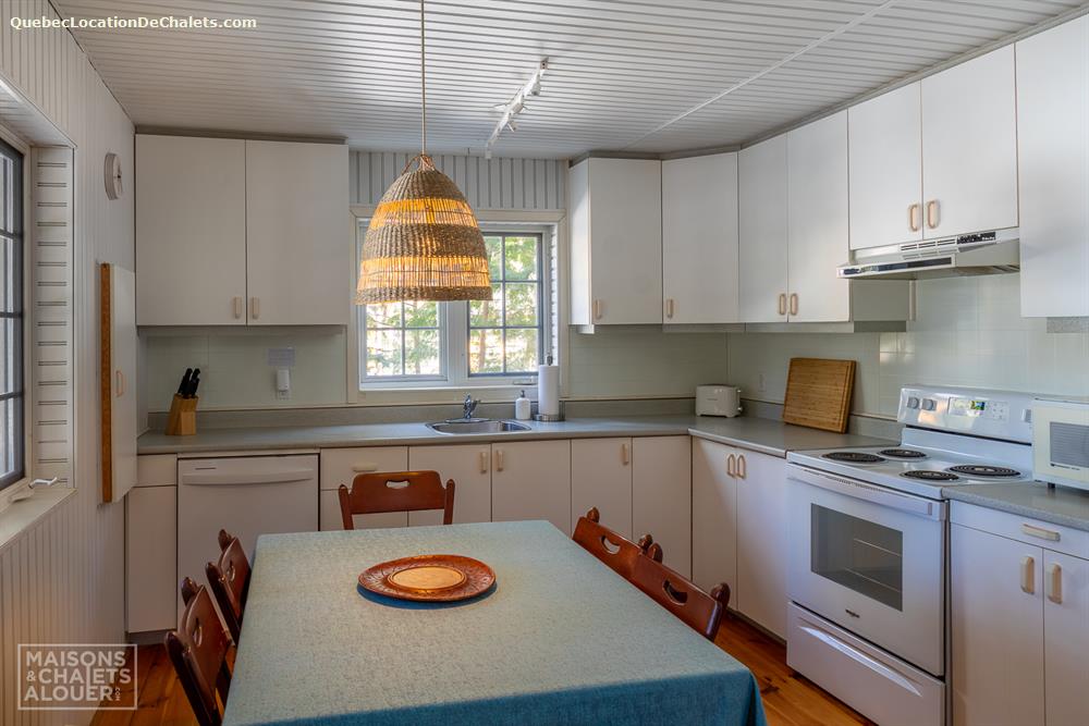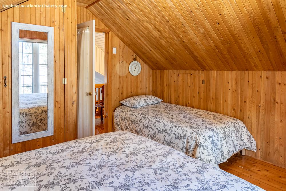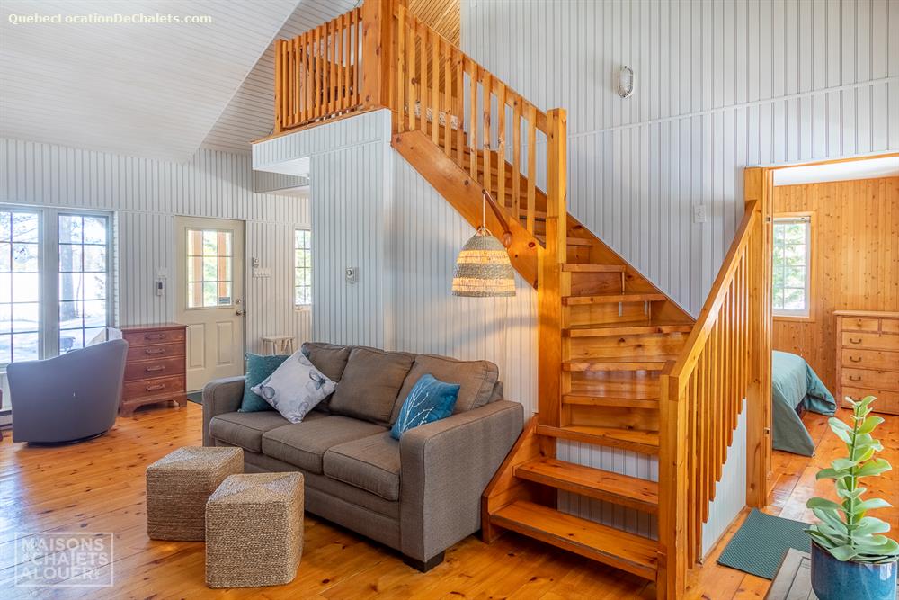 As soon as you enter the cottage, you’ll be struck by the immense stone fireplace in the living room. With high cathedral ceilings and large windows, natural lighting adds to the room’s special charm. In winter, a roaring fire ensures that guests appreciate even the coldest days. On the same floor is an open-concept kitchen and dining room with everything you need to prepare and enjoy delicious meals. There are 2 closed bedrooms and 1 bathroom.