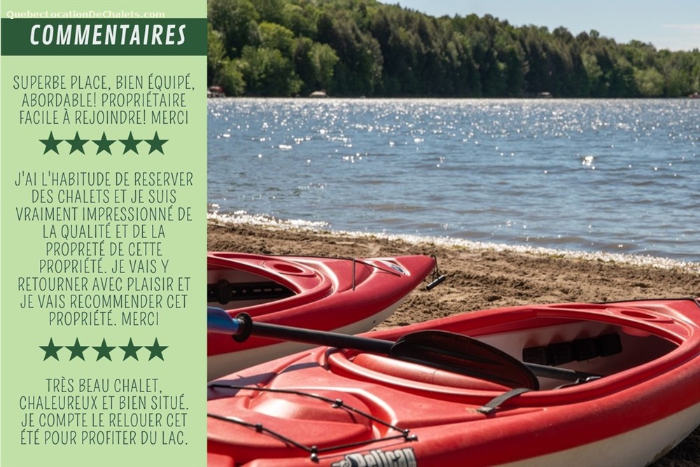 To make the most of your stay, a 4-season private hot tub is also available. The yard is equipped with a BBQ to prepare your meals while enjoying the outdoors. You can enjoy your meals outside, with a view on the lake.